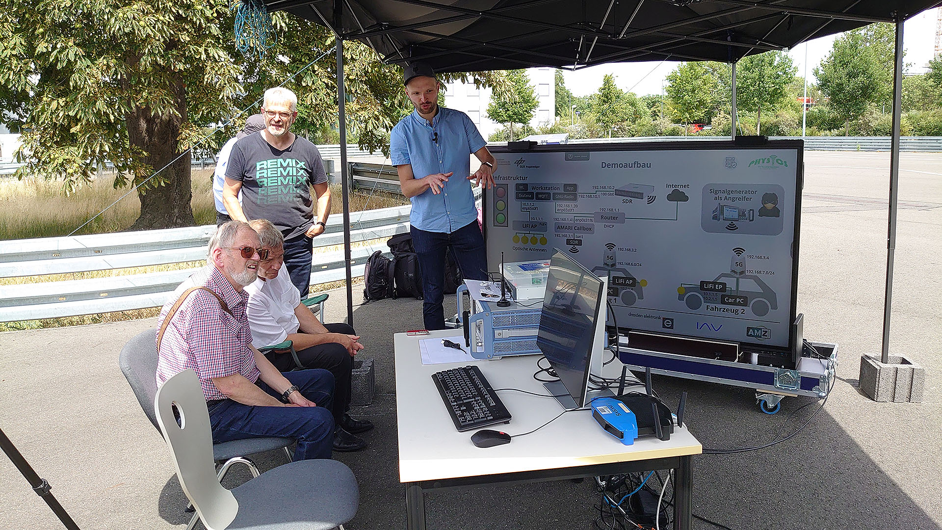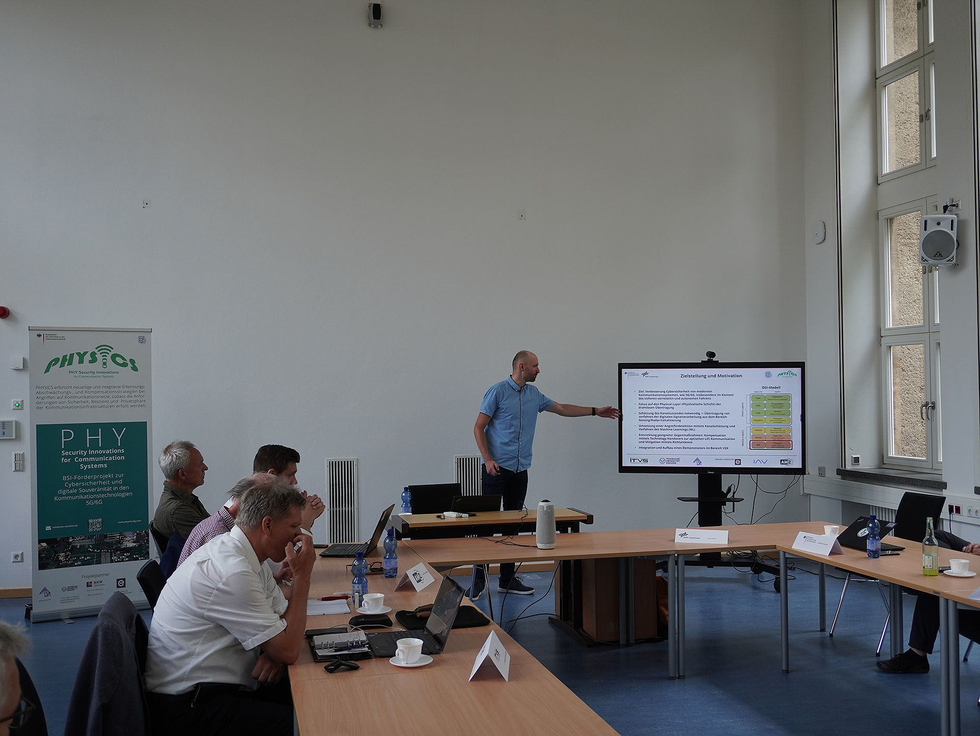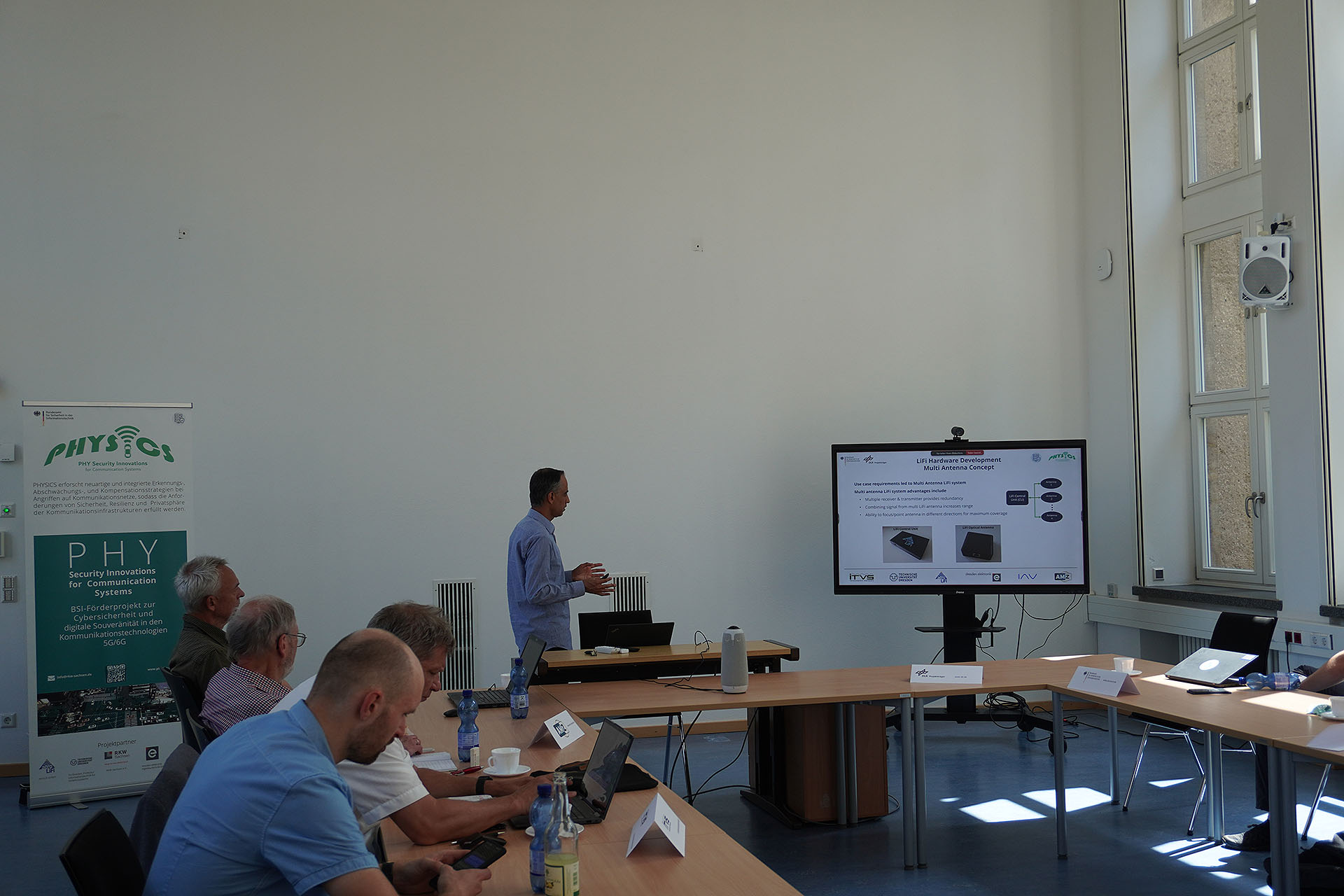 Mit Demonstration des entwickelten Gesamtsystems zum sicheren vernetzten und autonomen Fahren fand am 26.06.2025 der Abschluss des Forschungsprojekts „Physical Layer (PHY) Security Innovations for Communication Systems“ (PHYSICS) statt. Kerninhalt des Projekts war die synergetische Nutzung zweier physikalisch unterschiedlicher drahtloser Übertragungswege – 5G Mobilfunk und optische LiFi-Kommunikation – zur Vernetzung von Fahrzeugen (Vehicle-to-Everything, V2X). Das Konsortium bestand aus der TU Dresden mit den Informationstechnik für Verkehrssysteme (ITVS) und für Big Data Analytics in Transportati­on aus dem Netzwerk Automobilzulieferer Sachsen (AMZ), der aeroLiFi GmbH und der dresden elektronik ingenieurtechnik Gmbh.  Das Projekt wurde über die letzten gut zwei Jahre vom Bundesamt für Sicherheit in der Informationstechnik (BSI) im Rahmen des Programms „Cybersicherheit und digitale Souveränität in den Kommunikationstechnologien 5G/6G“ gefördert.