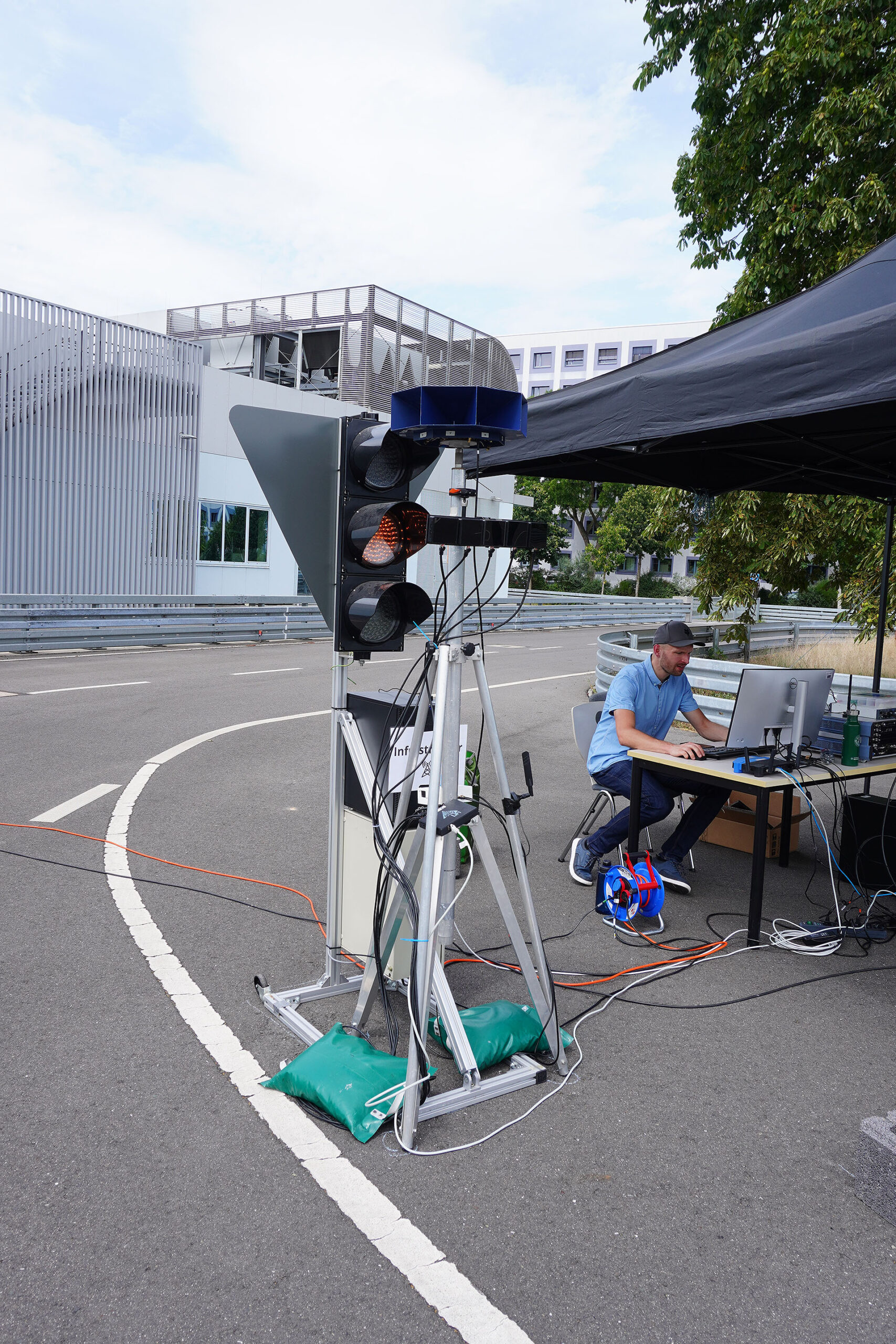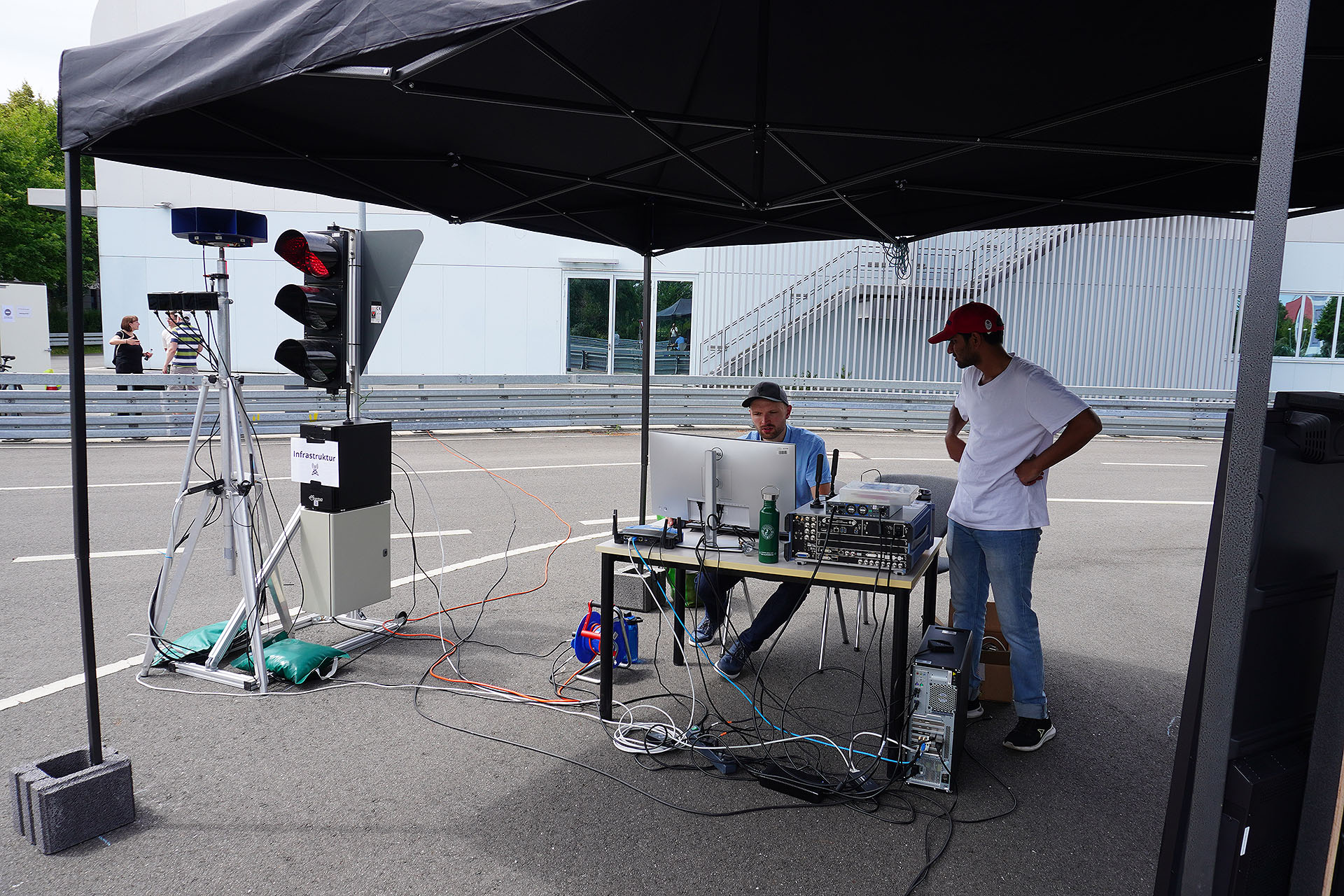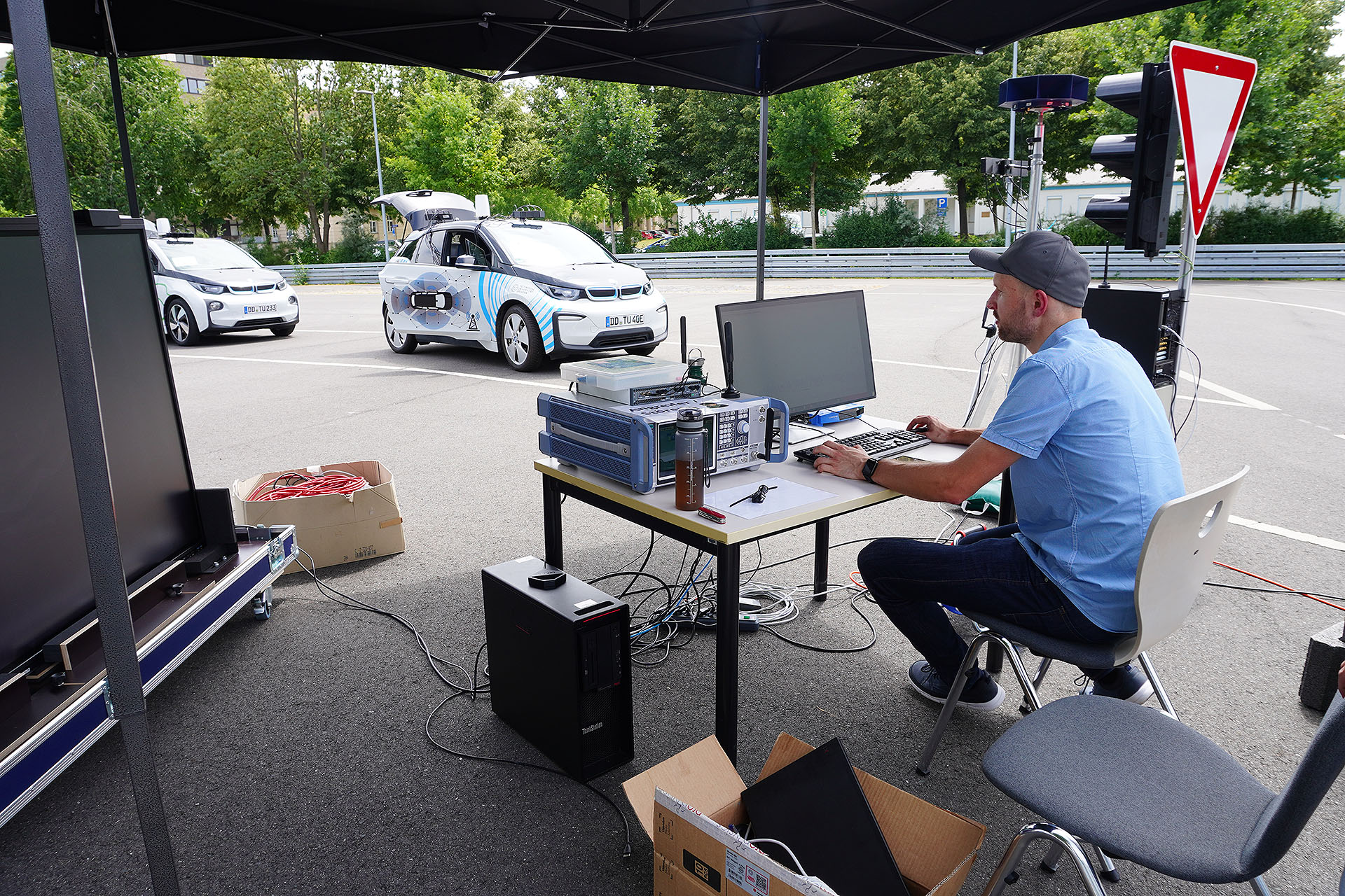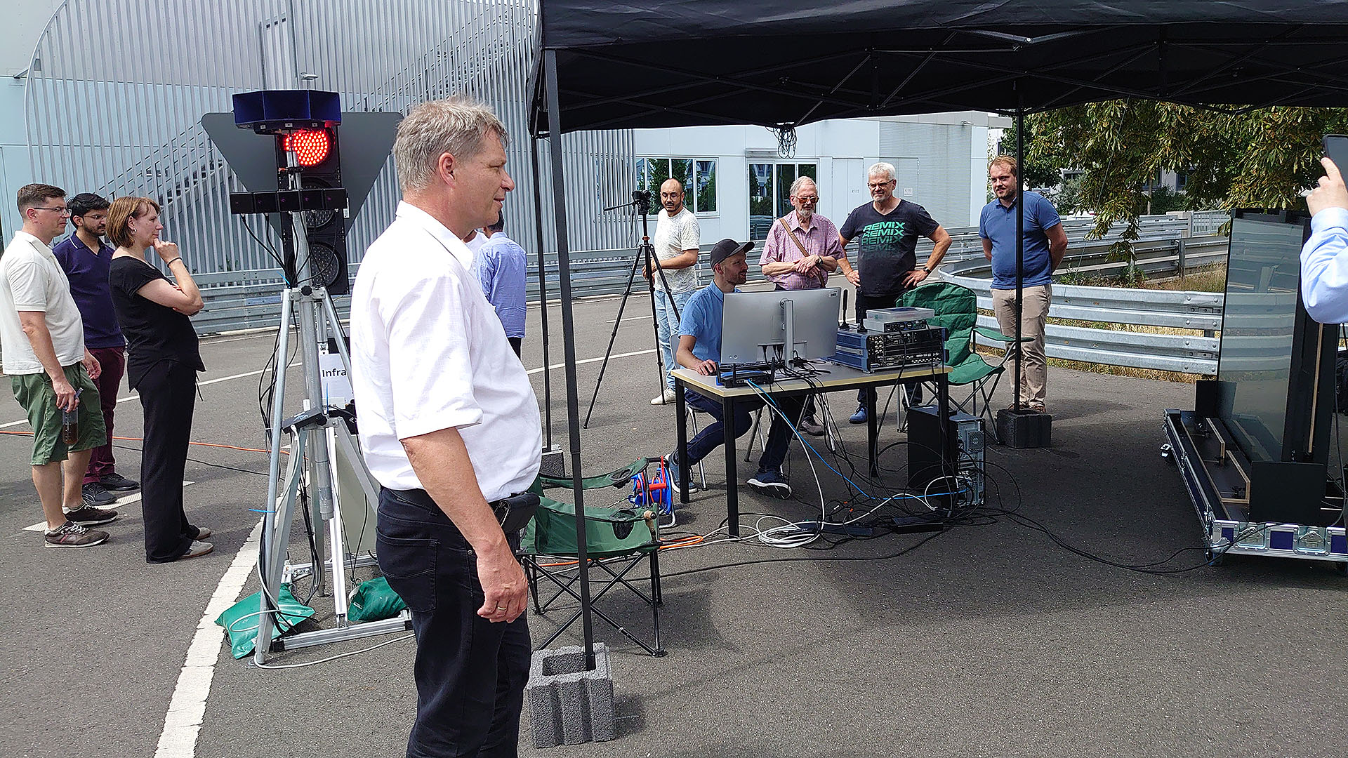Mit Demonstration des entwickelten Gesamtsystems zum sicheren vernetzten und autonomen Fahren fand am 26.06.2025 der Abschluss des Forschungsprojekts „Physical Layer (PHY) Security Innovations for Communication Systems“ (PHYSICS) statt. Kerninhalt des Projekts war die synergetische Nutzung zweier physikalisch unterschiedlicher drahtloser Übertragungswege – 5G Mobilfunk und optische LiFi-Kommunikation – zur Vernetzung von Fahrzeugen (Vehicle-to-Everything, V2X). Das Konsortium bestand aus der TU Dresden mit den Informationstechnik für Verkehrssysteme (ITVS) und für Big Data Analytics in Transportati­on aus dem Netzwerk Automobilzulieferer Sachsen (AMZ), der aeroLiFi GmbH und der dresden elektronik ingenieurtechnik Gmbh.  Das Projekt wurde über die letzten gut zwei Jahre vom Bundesamt für Sicherheit in der Informationstechnik (BSI) im Rahmen des Programms „Cybersicherheit und digitale Souveränität in den Kommunikationstechnologien 5G/6G“ gefördert.