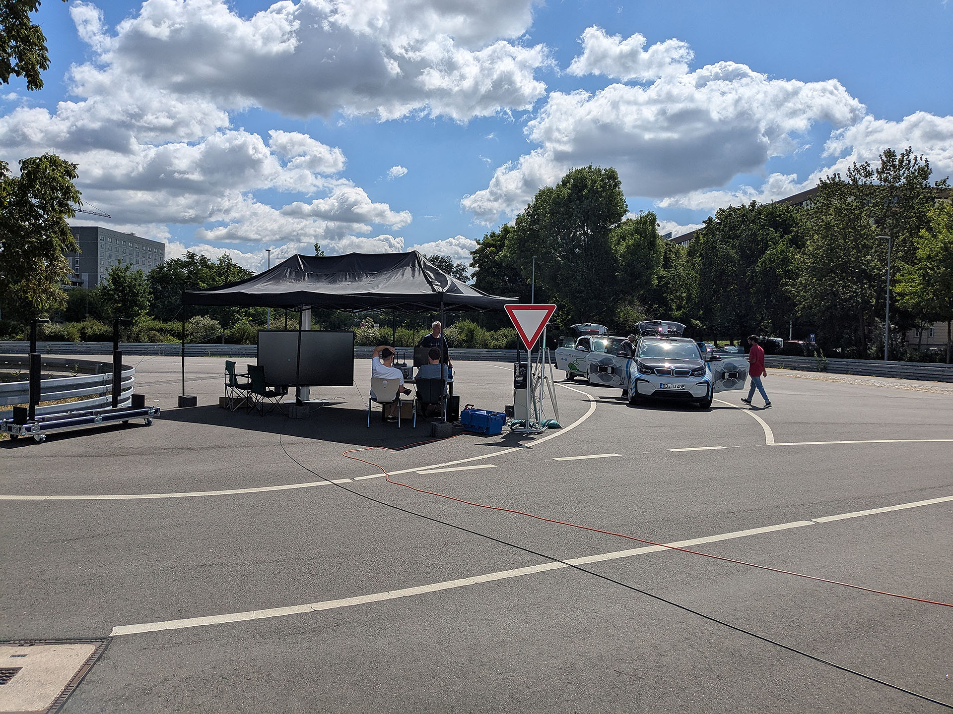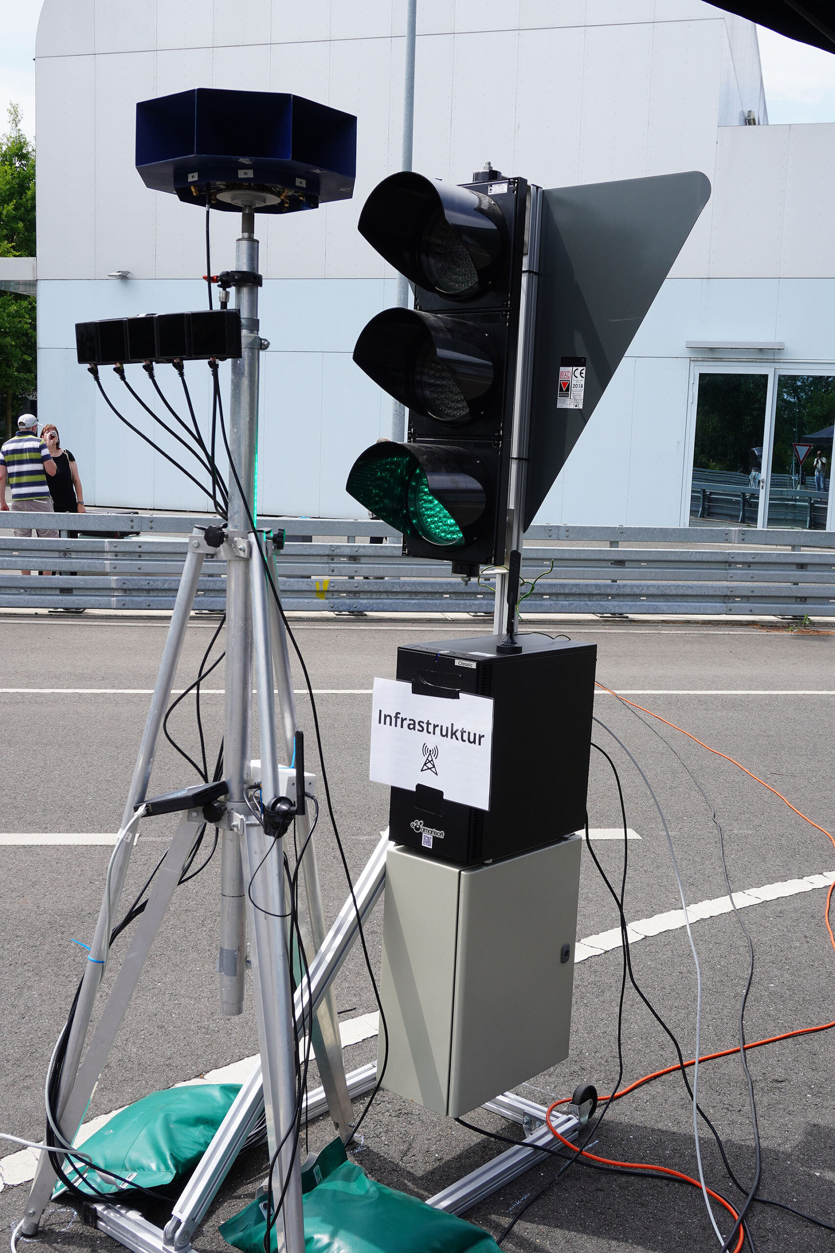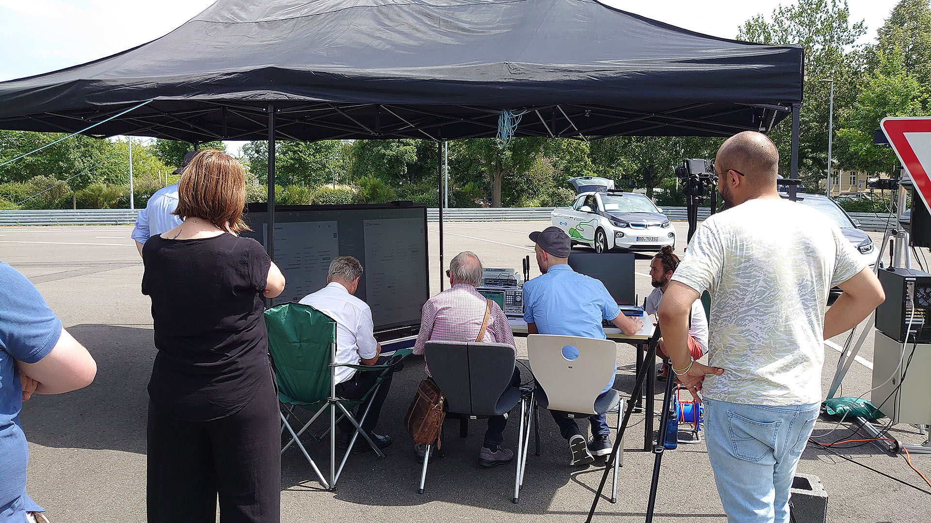 Die Abschlussdemonstration fand auf dem automotive Prüffeld der Hochschule für Technik und Wirtschaft Dresden (HTWD) mit einer Ausstattung von zwei Fahrzeugen und der entsprechenden Infrastruktur statt. Alle Komponenten und das Zusammenwirken der Angreiferdetektion, der Applikationsmanagement und die Gegenmaßnahmen (Handover zu LiFi und Antennenwechsel) konnten erfolgreich in einer V2X-Einsatzumgebung demonstriert werden.